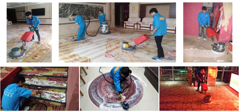 使用設(shè)備:地毯干洗機(jī)、吸塵吸水機(jī)、梳毛機(jī)等。