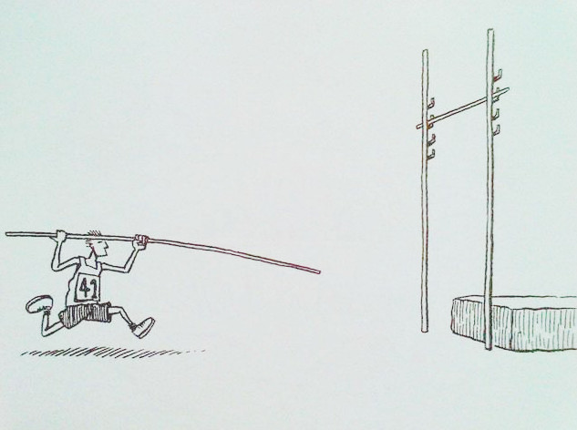 一位撐桿跳選手,一直苦于無法超越一個高度。他失望地對教練說:“我實在是跳不過去。”